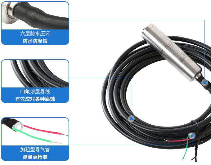 SIN-P260投入式液位變送器SIN-P260投入式液位變送器由高性能擴散硅壓阻式壓力傳感器作為測量元件,把與液位深度成正比的液體靜壓力準確測量出來,并經過信號調理電路轉換成標準(電流或電壓)信號輸出,建立起輸出信號與液體深度的線性對應關系,實現對液體深度的測量。產品精度高、體積小,直接投入液體中,即可測量出變送器末端到液面的液體高度,使用方便。適用于石油、化工、電廠、城市供水、水文勘探領域的液位測量與控制。經過長期老化及穩定性篩選,產品性能穩定可靠,能夠適用應用于環境比較惡劣的露天現場,同時能夠現場液位顯示,零點,滿程可遷移。