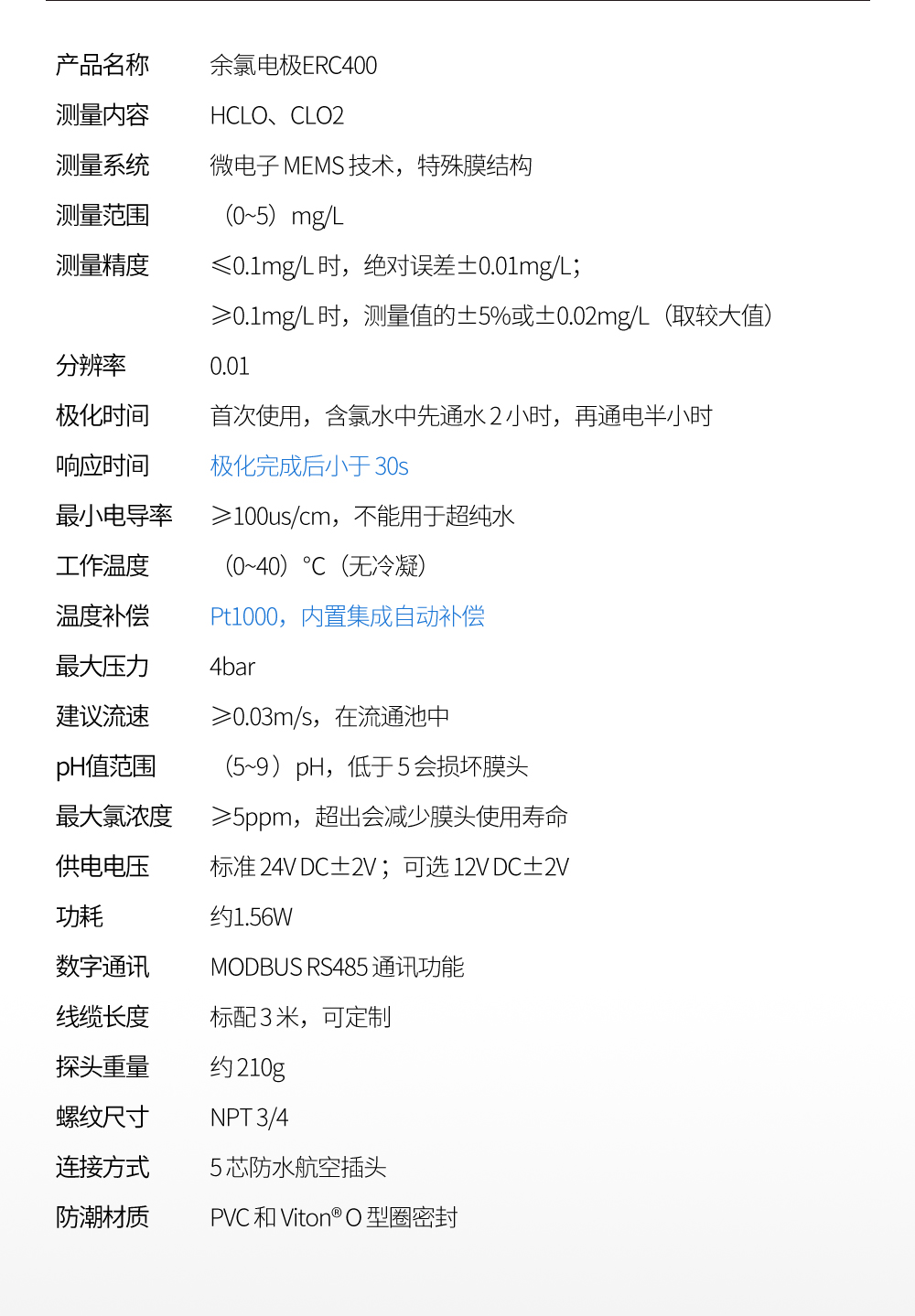 本余氯儀內置瑞士傳感器,具有測量精度高、響應時間快、維護 成本低等特點。余氯儀輸出一路(4~20)mA 標準信號和一路 RS485 信號,可連接各種調節器,如根據客戶需求可連接兩位調節器、時間 比例調節器、非線性調節器和經典的 PID 調節器等,組合成各類余氯 控制系統。